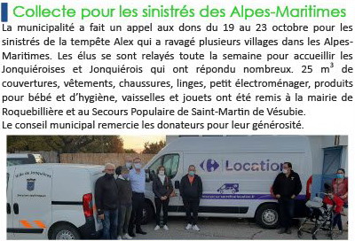 Une collecte de vêtements, vaisselle, électroménager a été organisé à Jonquières (Vaucluse), sous l’égide de la municipalité, pour faire parvenir ces dons sur le terrain, quand on a tout perdu, tout est le bienvenu!