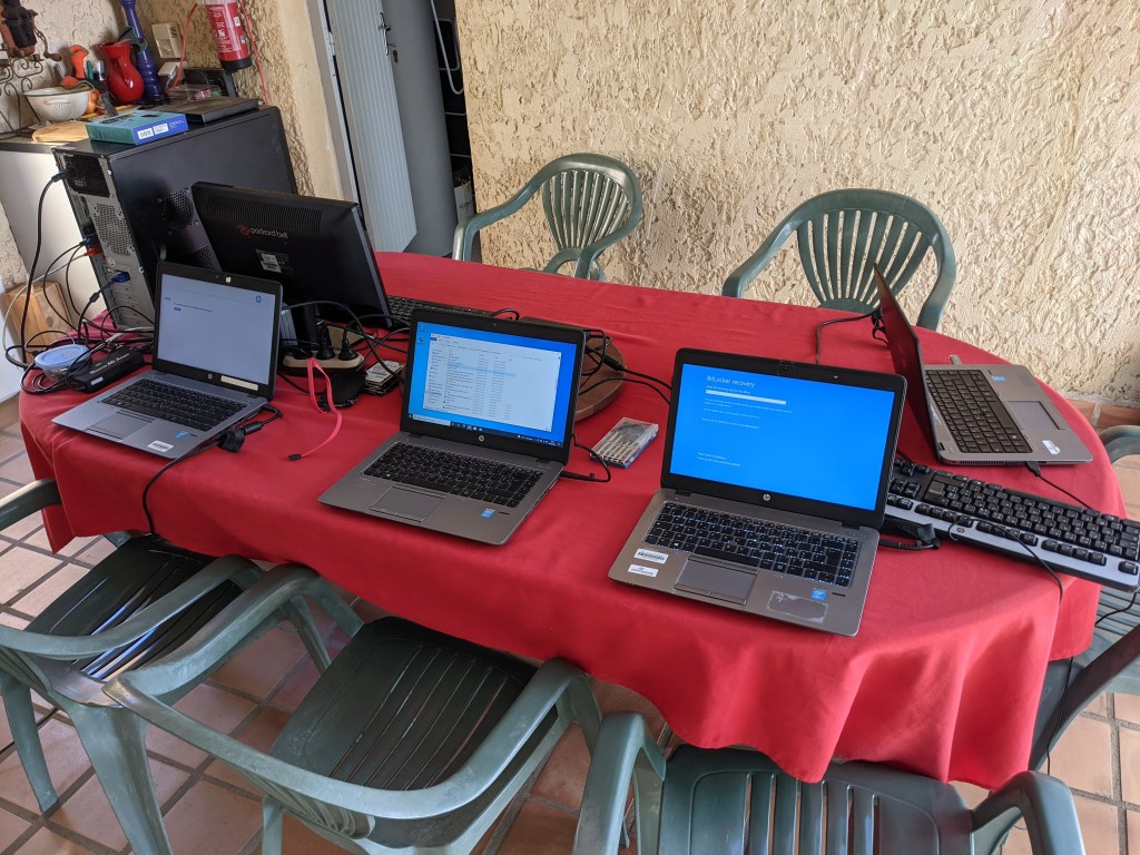 Pour cela j’ai fait appel à tous mais contacts amicaux et familiaux qui ont répondu, présent! En deux années j’ai réussi a rassembler 14 PC et écrans, claviers, souries, ainsi que 16 ordinateurs portables. Après remise en état, il restait 7 PC et 9 ordinateurs portables en fonctionnement correct. Il ne s’agit pas de faire du chiffre, mais de donner du matériel qui soit facilement utilisable et fiable. Etudiants, entrepreneurs, retraités, familles en difficultés ont été les premiers a bénéficier de ces équipements. Mais sans les généreux donateurs, rien n’est possible. Du matériel est arrivé des Etats Unis également. Le travail se poursuit, tant à l’étranger, que dans notre environnement local.